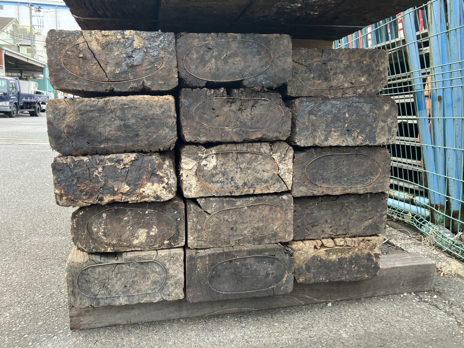 【中古枕木3種 クレオソート処理品】 入荷情報 2025.11.07 お世話になっております。 中古枕木 クレオソート処理品 入荷しました! 現在3種類ございます。 2000×200×140 25本/梱包 2100×300×140 15本/梱包 2400×230×150 20本/梱包 2000×200×140 上:2400×230×150 下:2100×300×140 💡価格、詳細は各担当者までお問い合わせください!